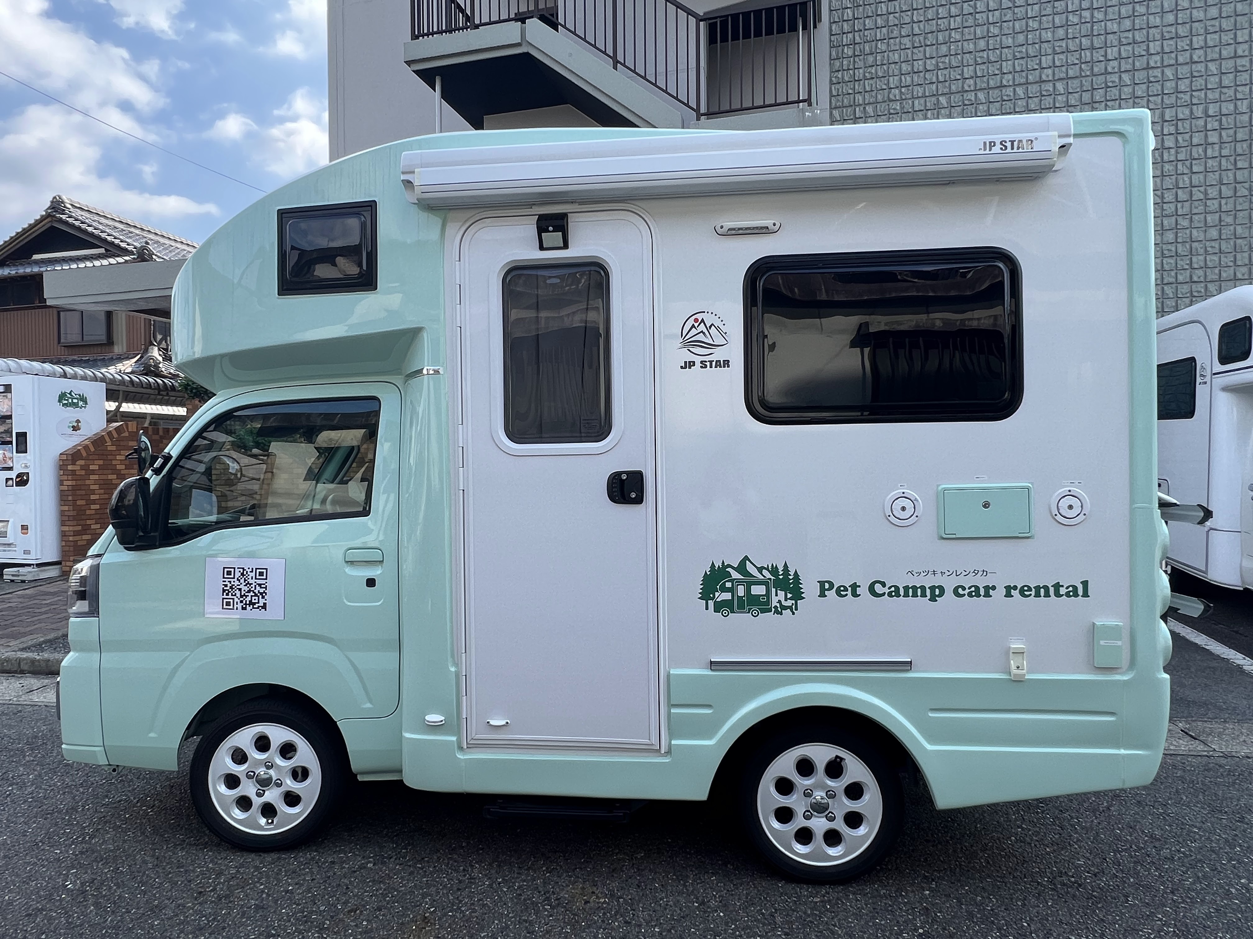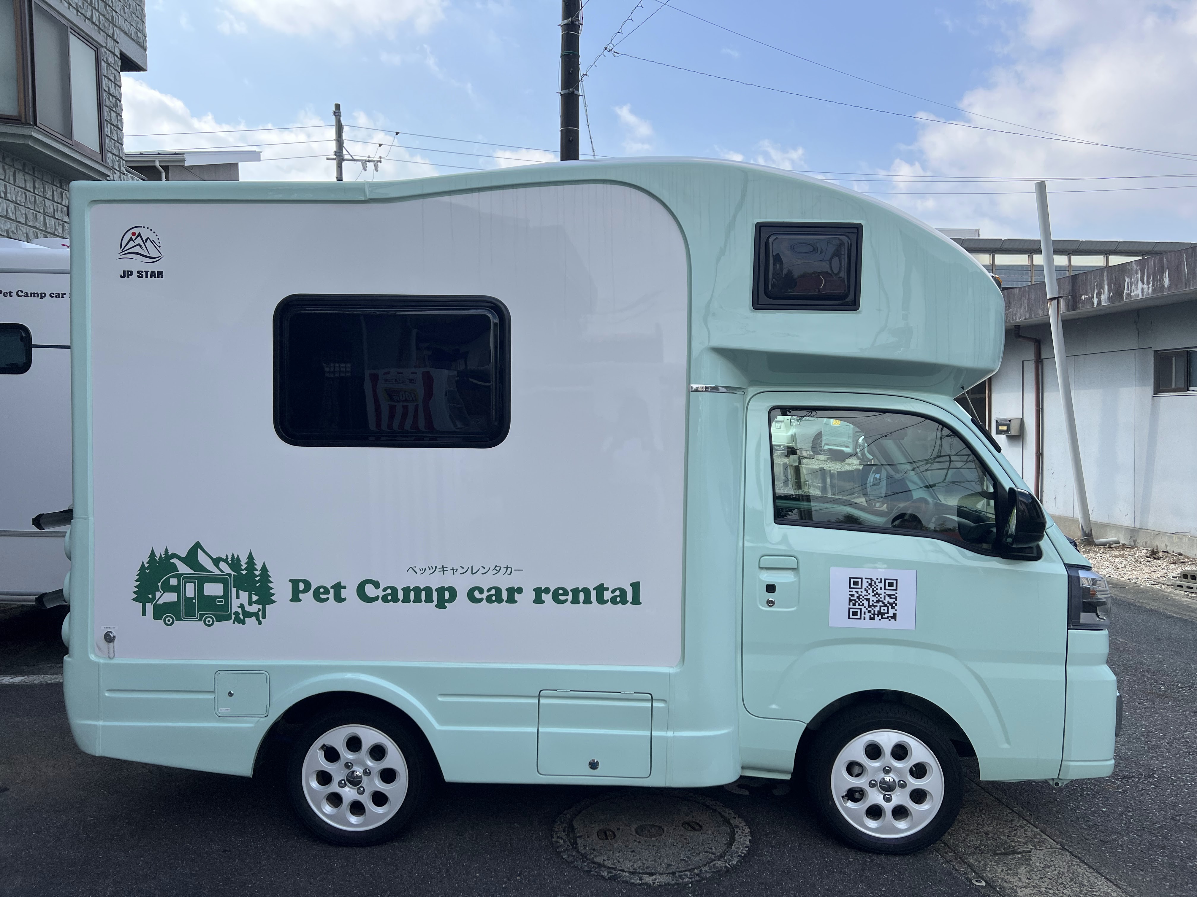 ※免許取得後3年以上でレンタル可能です。令和5年登録の新車です。4人乗り、4人就寝可能なダイハツ・ハイゼット車両のキャンピングカーです。ブランド名はJPSTAR Happy1+です。エアコン、FFヒーター付きのため、年間を通じて乗ることが可能です。リチウムイオンバッテリー、インバーターも積んでおり、外部充電可能です。電子レンジ、冷蔵庫、シンク、カセットコンロ等の設備がありますので、キャンプの際は大活躍です。ペットはクレート等に入れるときは同乗可能です。ぜひペット旅お楽しみ頂けたら幸いです。もしご不明点がありましたら、予約リクエスト時ご遠慮なくご質問ください。