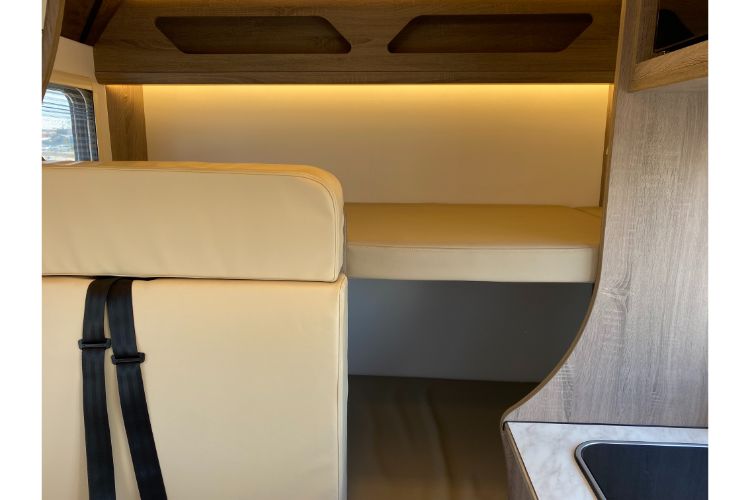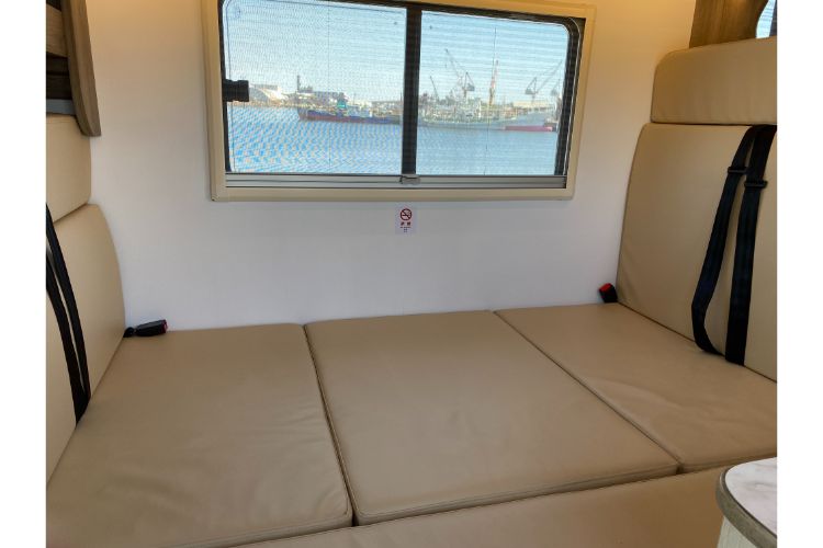 バンクベッド、フロアベッド、後部二段ベッドを使えば最大4名の就寝が就寝可能!