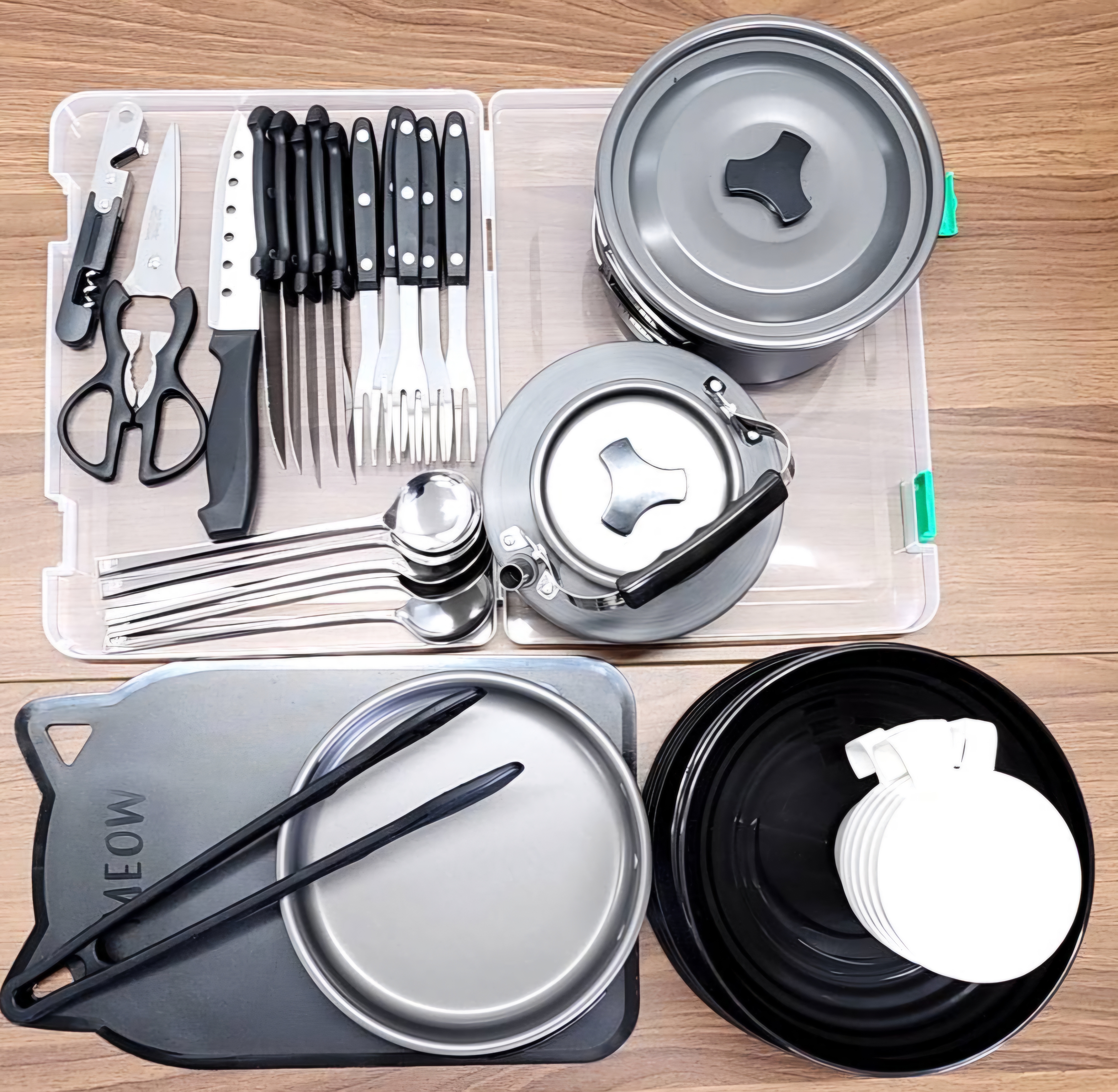 食器やお皿、まな板ハサミなどが入ったキッチンセットです。