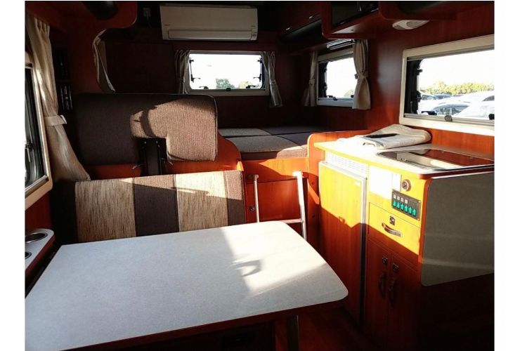 全長5mクラス最大級の圧倒的広々空間、アイドリングなしでクーラーも利用可能です!