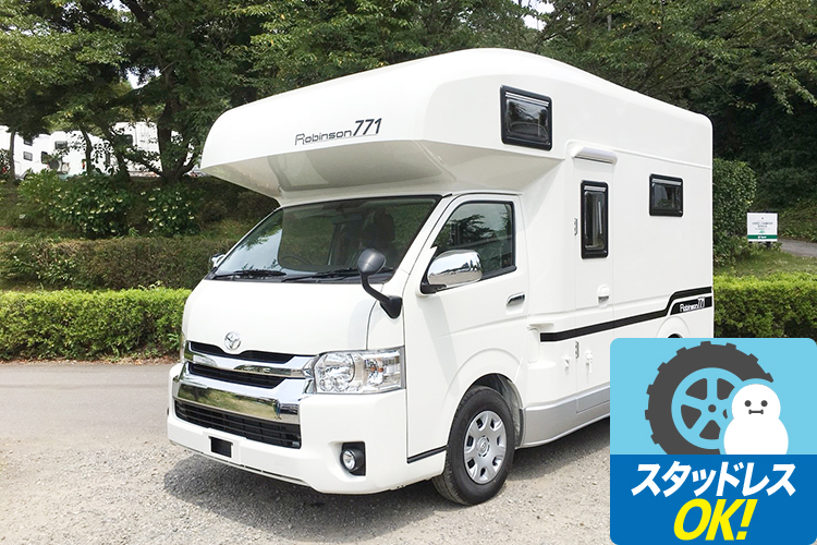 車種は、大人気のハイエースベースのキャンピングカー「ロビンソン771」、カムロードベースの「ロビンソン106」の2台ををご用意。普通免許、ペット同乗でご利用いただけます。