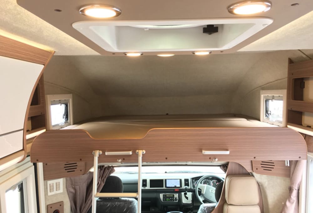 | Vehicle Features | Rear-view camera, FF heater, external power supply charging cable, navigation, ETC unit, inverter, sub-battery, refrigerator, gas, stove |