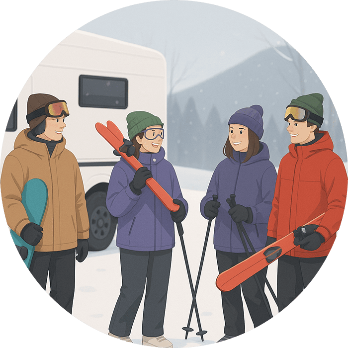 A motorhome, which allows you to move to the day's best powder