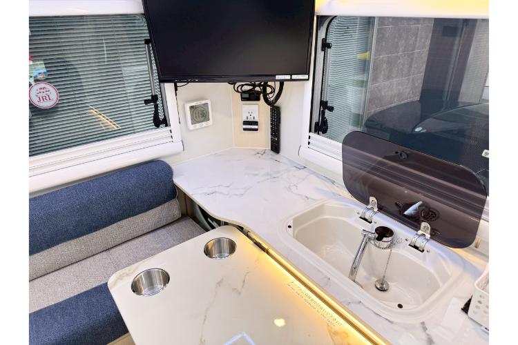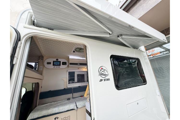 エンジンを切りながらでもサブバッテリーを充電していなくてもエアコン利用可能。サイドオーニングが内蔵されているので事故のリスクを軽減できます!WiFi標準装備。