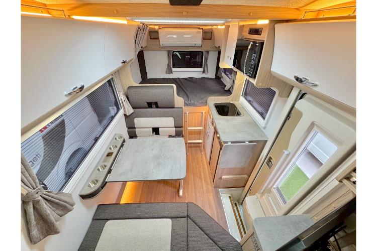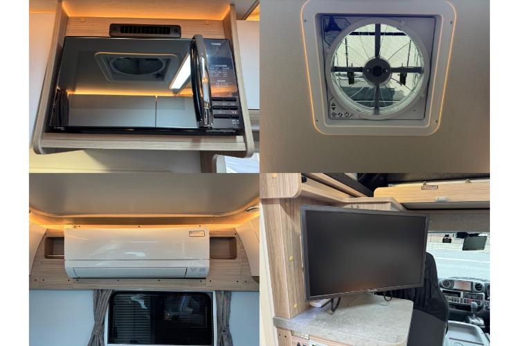 ダブルタイヤなので抜群の安定感!リチウムイオンバッテリー搭載です。エンジンを切りながらでもサブバッテリーを充電していなくてもエアコン利用可能。わんちゃんのお留守番も安心。常設ダブルベットのタイプです。WiFi標準装備。