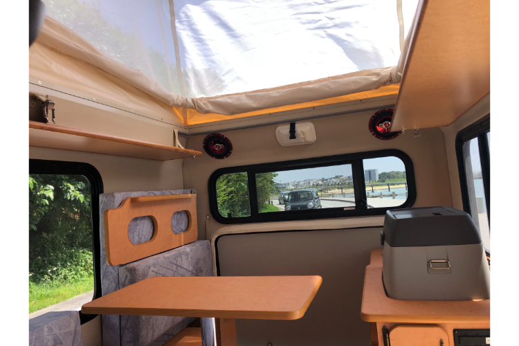 ポップアップ―ルーフを上にあげることで、圧迫感を軽減できます。