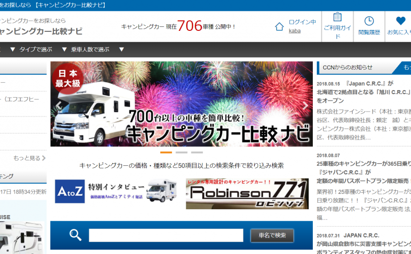 こちらにはキャンピングカーのスペックが700台以上掲載されていて就寝人数や車体の大きさなど実に50項目以上の検索条件からキャンピングカーを絞ることが可能です。