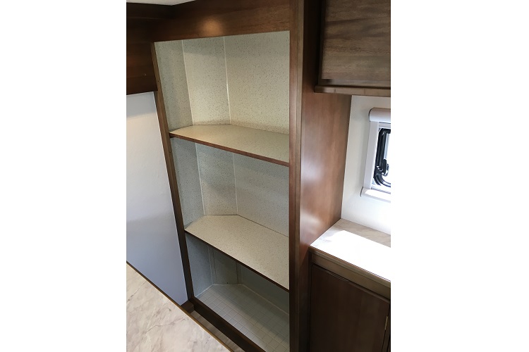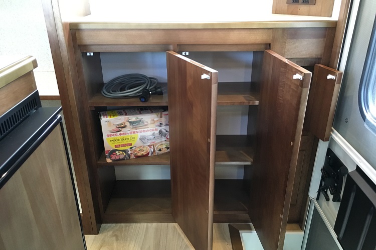調理中も車内で円滑なコミュニケーションが取れる、オープン型キッチンを取り入れた他のキャンピングカーにはないデザイン性を実現。