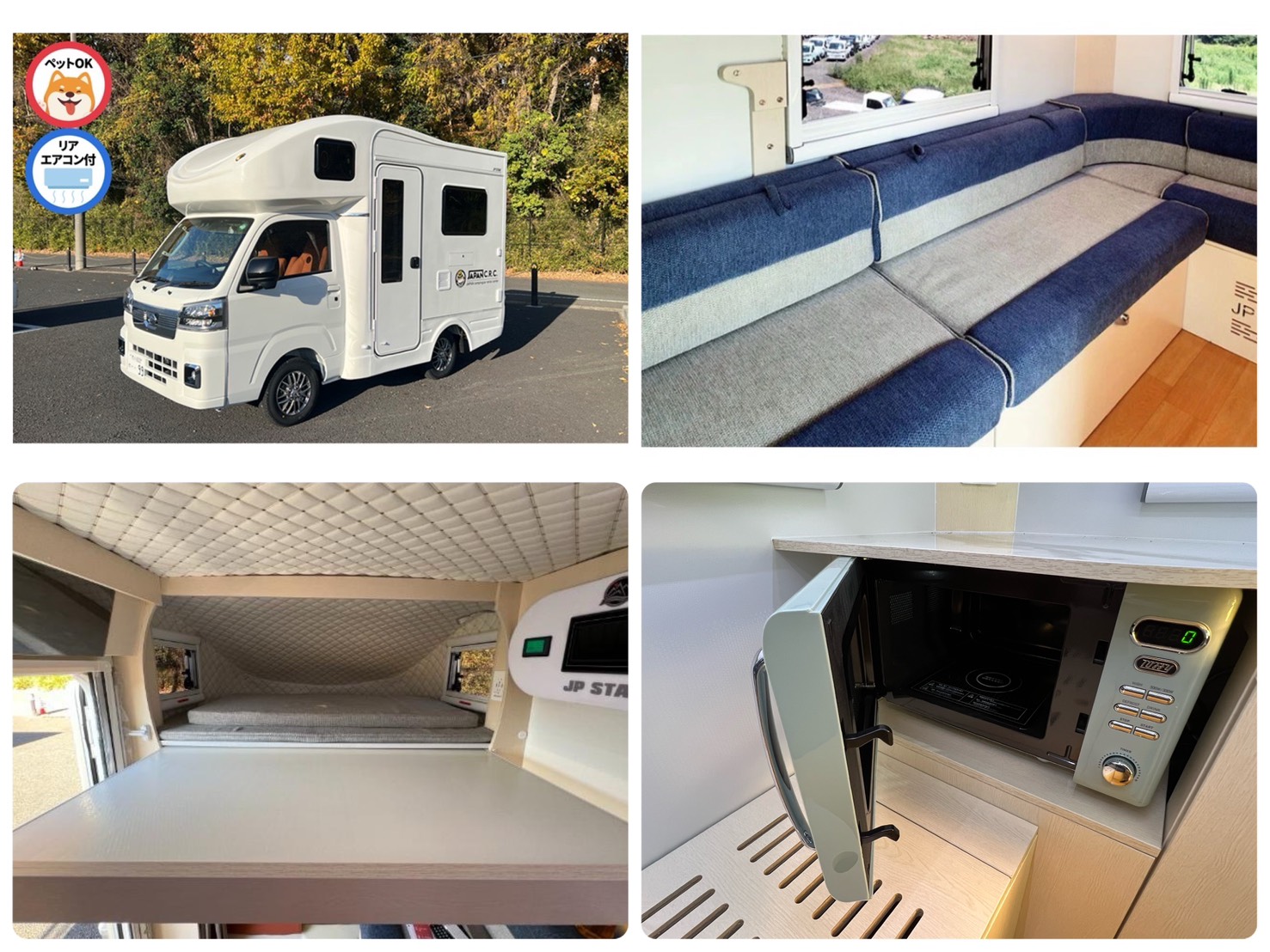 下記の車種がご利用可能です。 Happy1 Premium(ハッピーワンプレミアム)(星野リゾートプラン 充実プラン) 2名利用のキャンピングカーならこれがおすすめ!コンパクトな軽キャブコンなら街中も走りやすい! 現在選択中の料金 1泊2日 2泊3日 平日 50,000円 68,000円 休日 72,000円 98,000円 年末年始 100,000円 140,000円